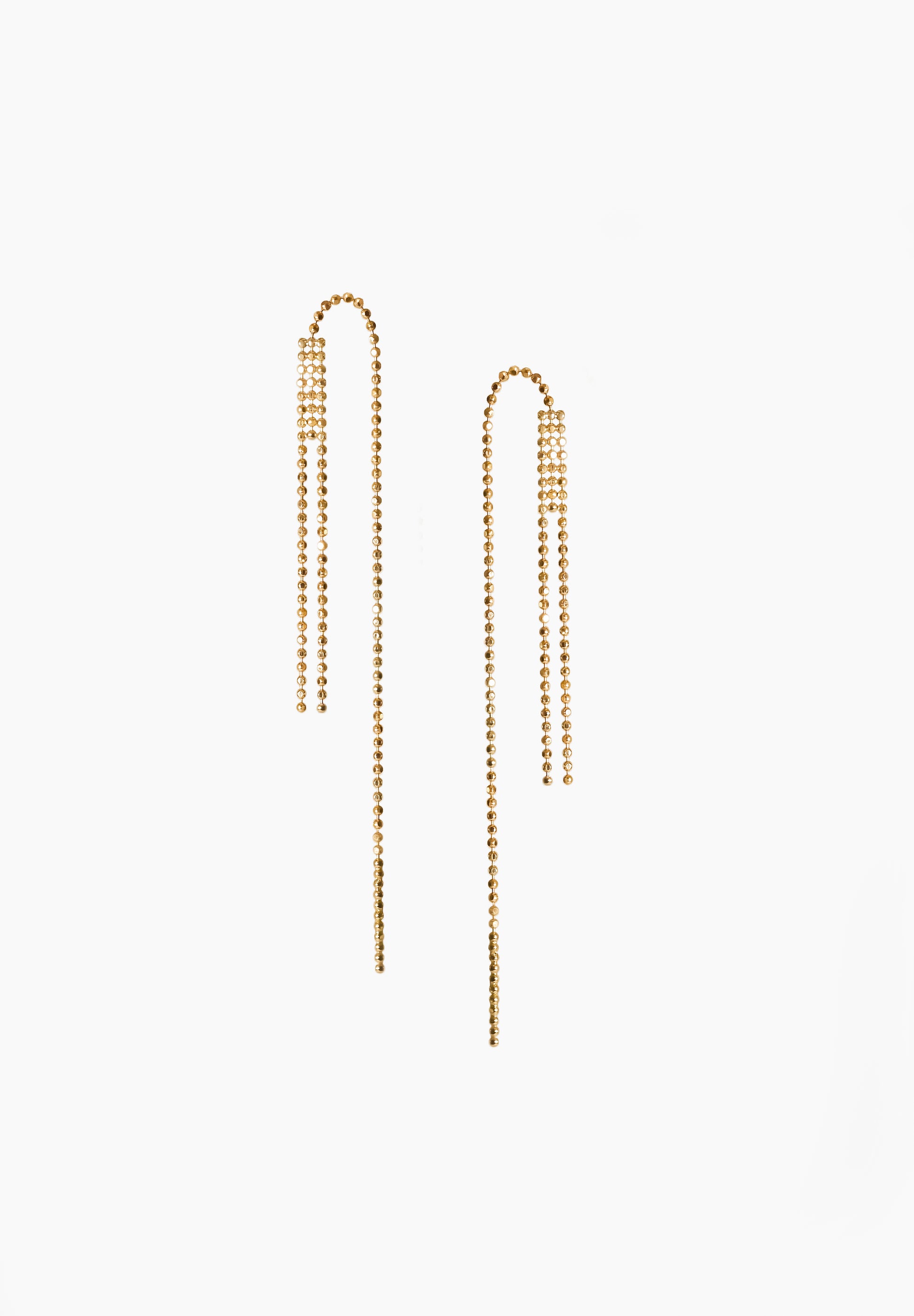 Folkは3本の長さ違いのチェーンが流れるようなシルエットを形作る、華やかかつ上品な印象のピアスです。