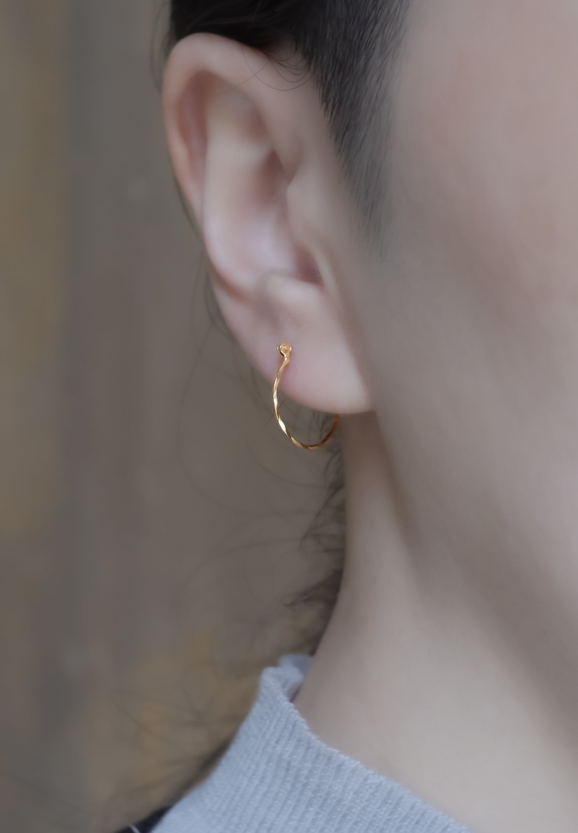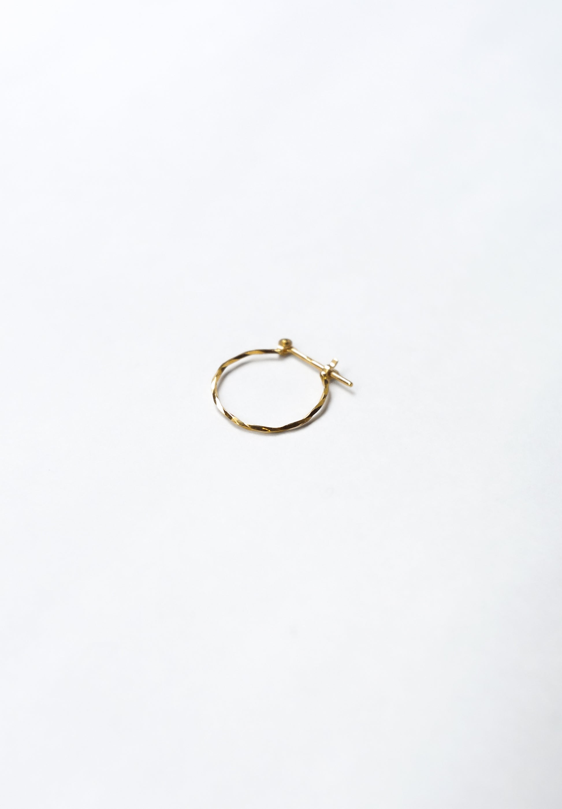 約0.8mmのK18の線で作られたフープピアス。カッティングの装飾が施された線は、繊細かつシャープな光を放ちます。