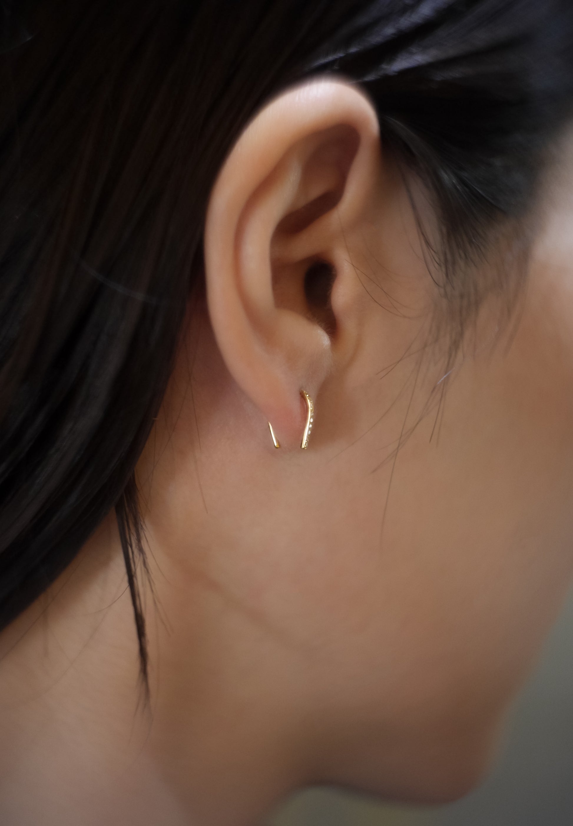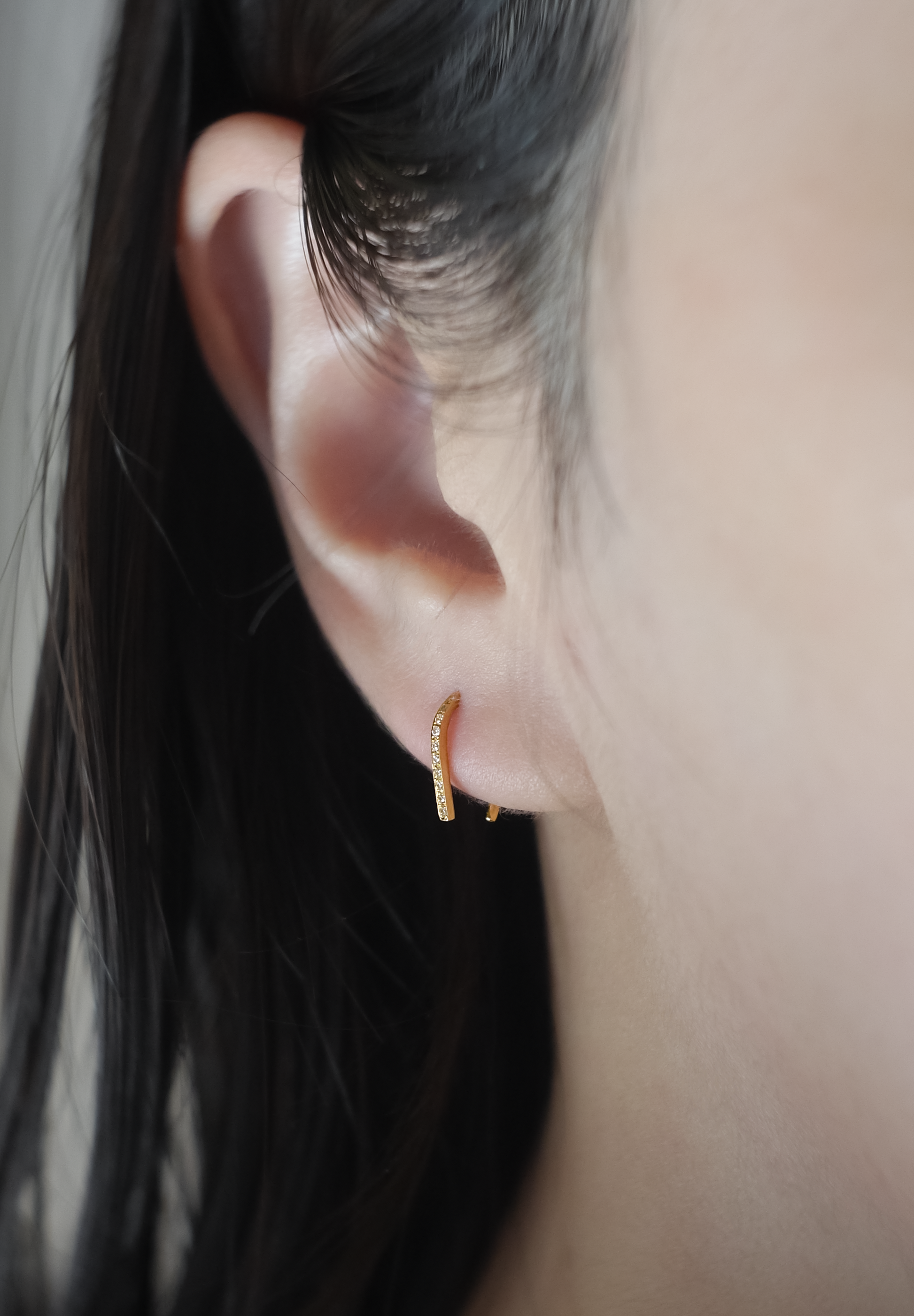 馬の蹄をモチーフにデザインされたピアス "Spartacus"の、装着時に正面に向く面に極小のダイヤモンドを据えたバージョン。馬蹄の堂々とした佇まいとシンプルで洗練されたシルエットは、耳たぶのピアスホールに通すだけで十分なホールド感を発揮します。K18とダイヤモンドのラグジュアリーな雰囲気をさりげなく演出できる究極にミニマルなアイテムです。