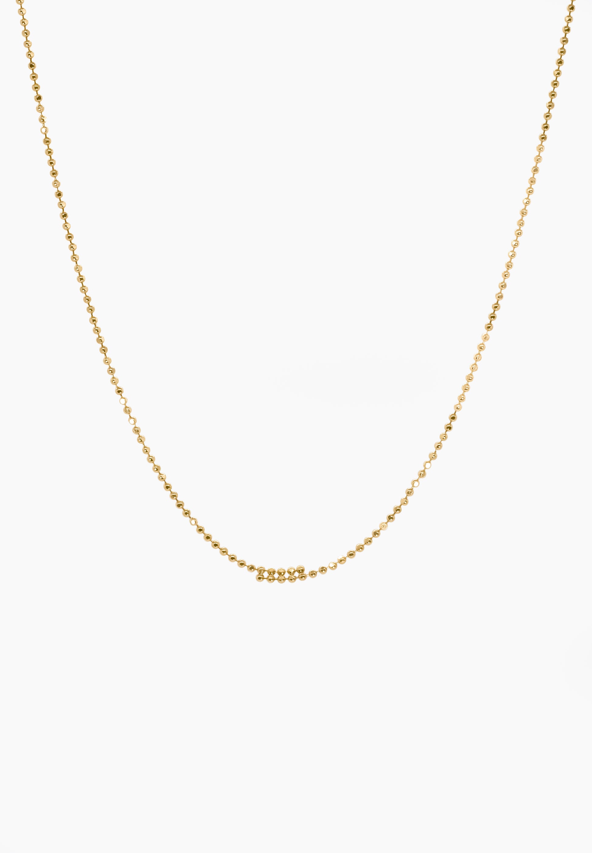 約1.0mmのボールカットチェーンが、房のように重なり、繋がり、美しいシルエットを形成しています。また、ボールチェーンを溶接し固める技術により、無駄を削ぎ落とした完全にミニマルなスタイルを実現させました。