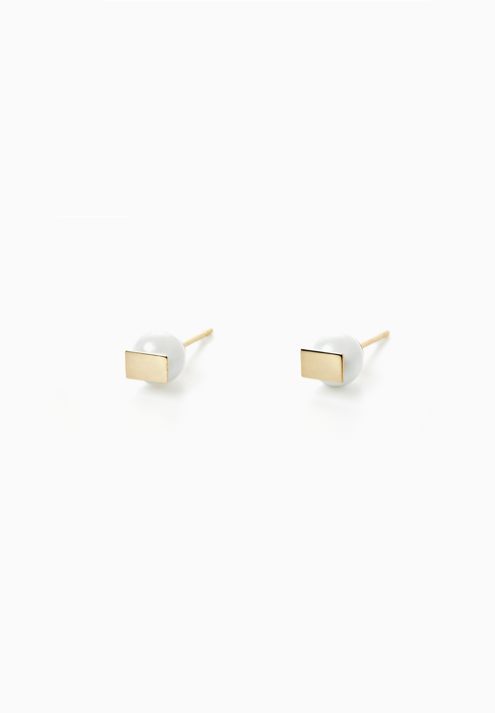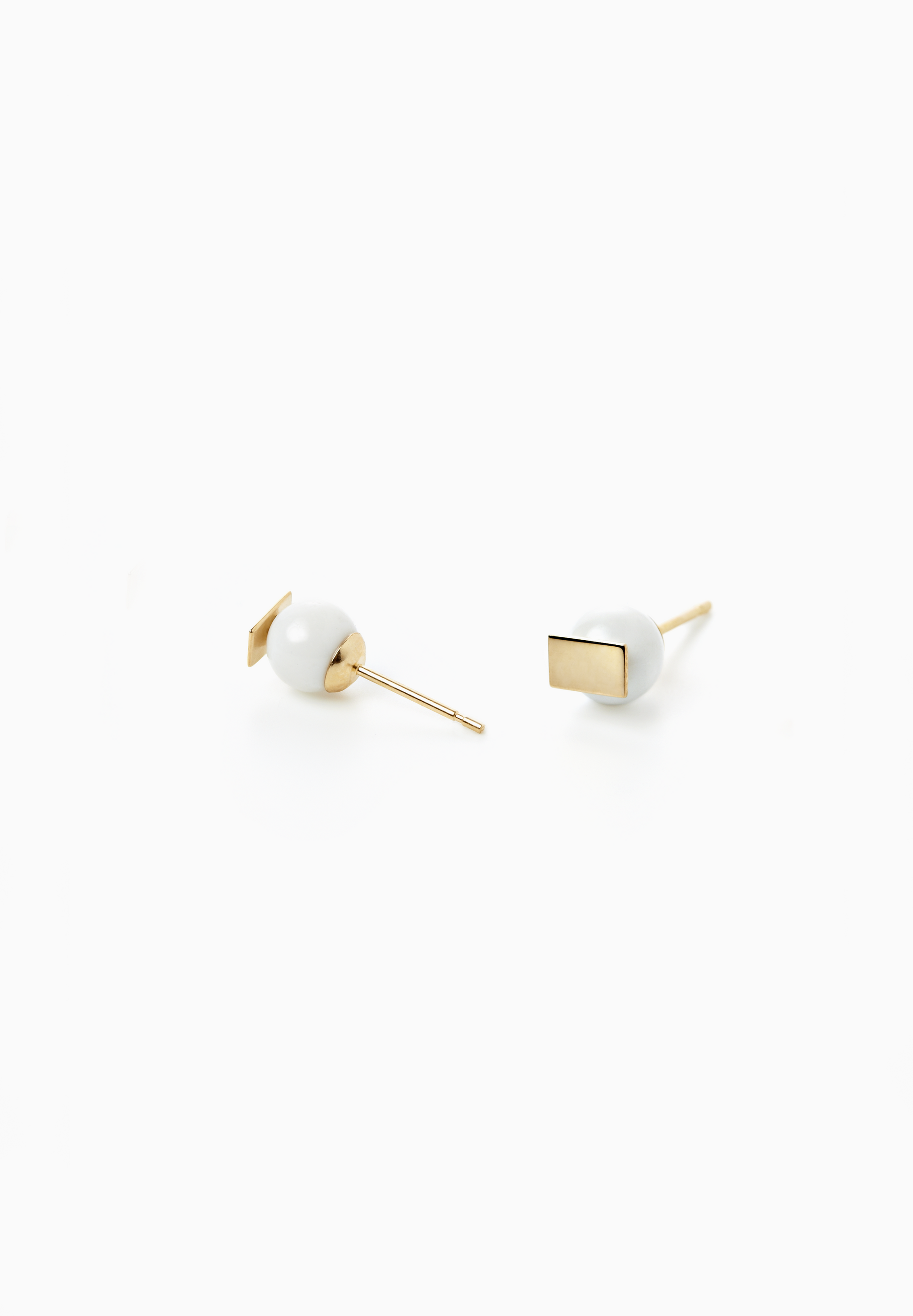 BEHIND THE MASK | ビハインド・ザ・マスク | Pierced Earrings | 18-karat yellow gold, White Agate | White Agate: diameter 6.0mm