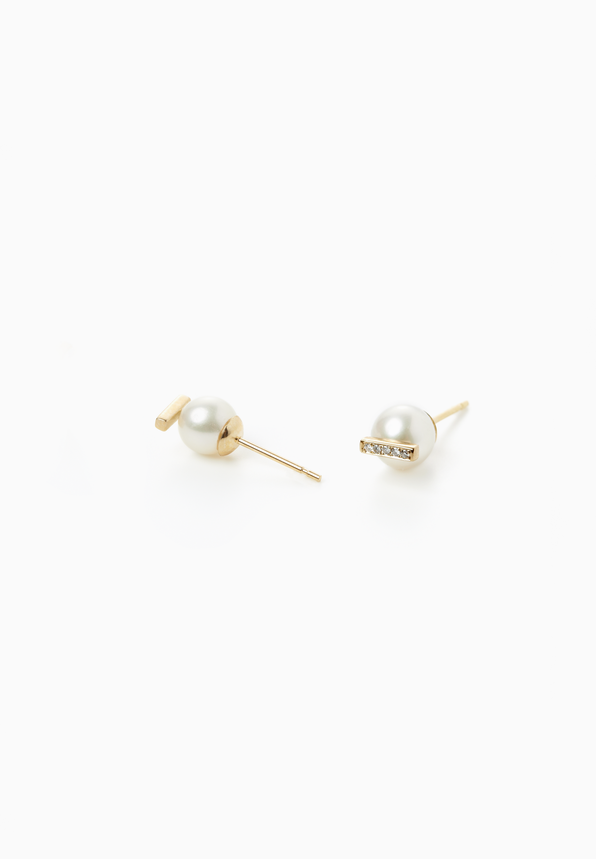 BEHIND THE MASK | ビハインド・ザ・マスク | Pierced Earrings | 18-karat yellow gold, Fresh water pearl, Diamond | Pearl: diameter 6.0mm
