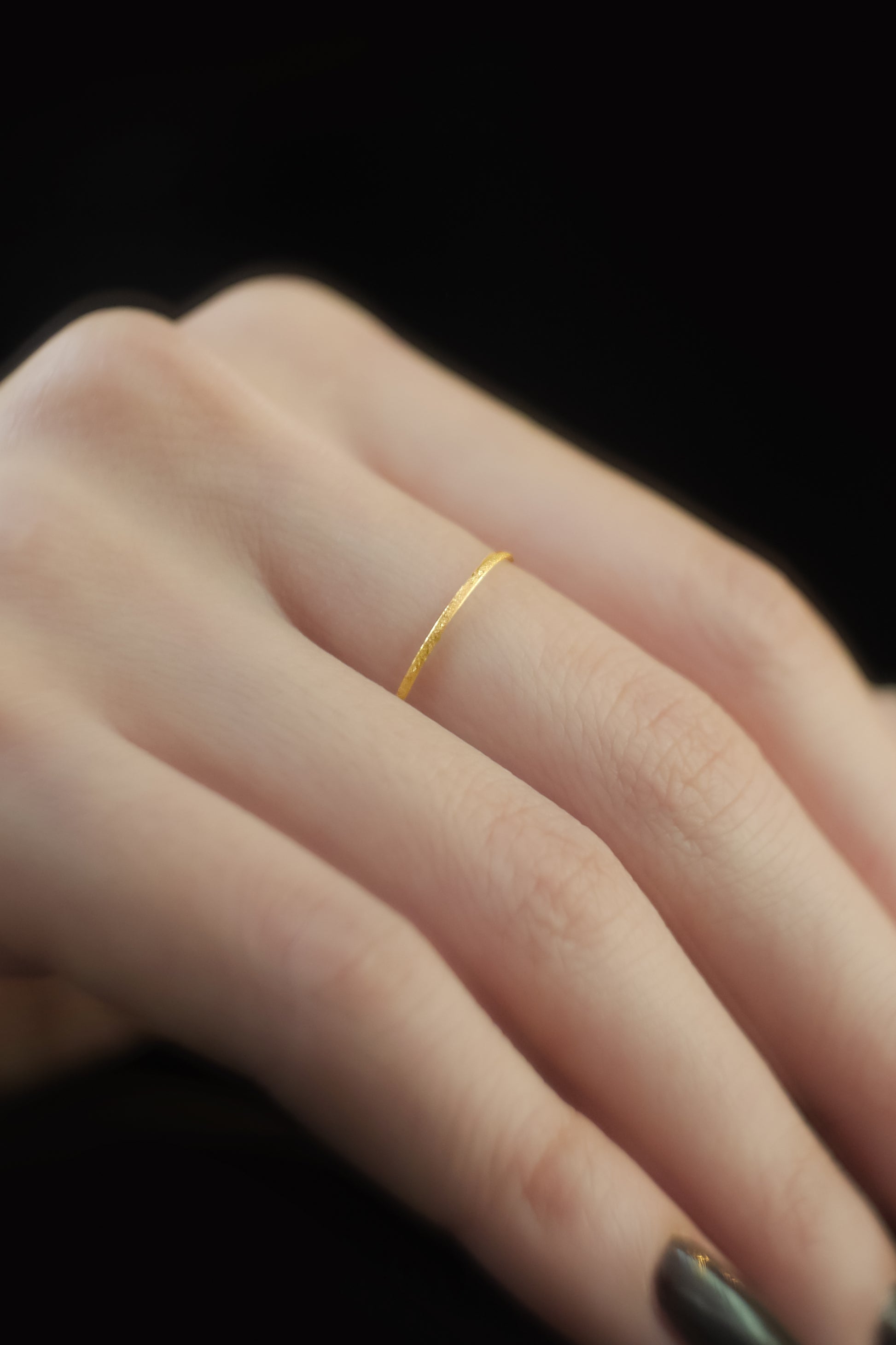 ホーリー(holy)。径が約1mmの三角形の線を用いたリング。鋳造ではないため、一般的なリングの鋳造時にできる気泡が無く表面が鏡のように美しい仕上がりです。地金から作っているため高い強度が特徴的なハイクオリティーのリングです。トップに三角形の角がくるデザインで、装飾的な雰囲気がより強く、エッジーな空気感。