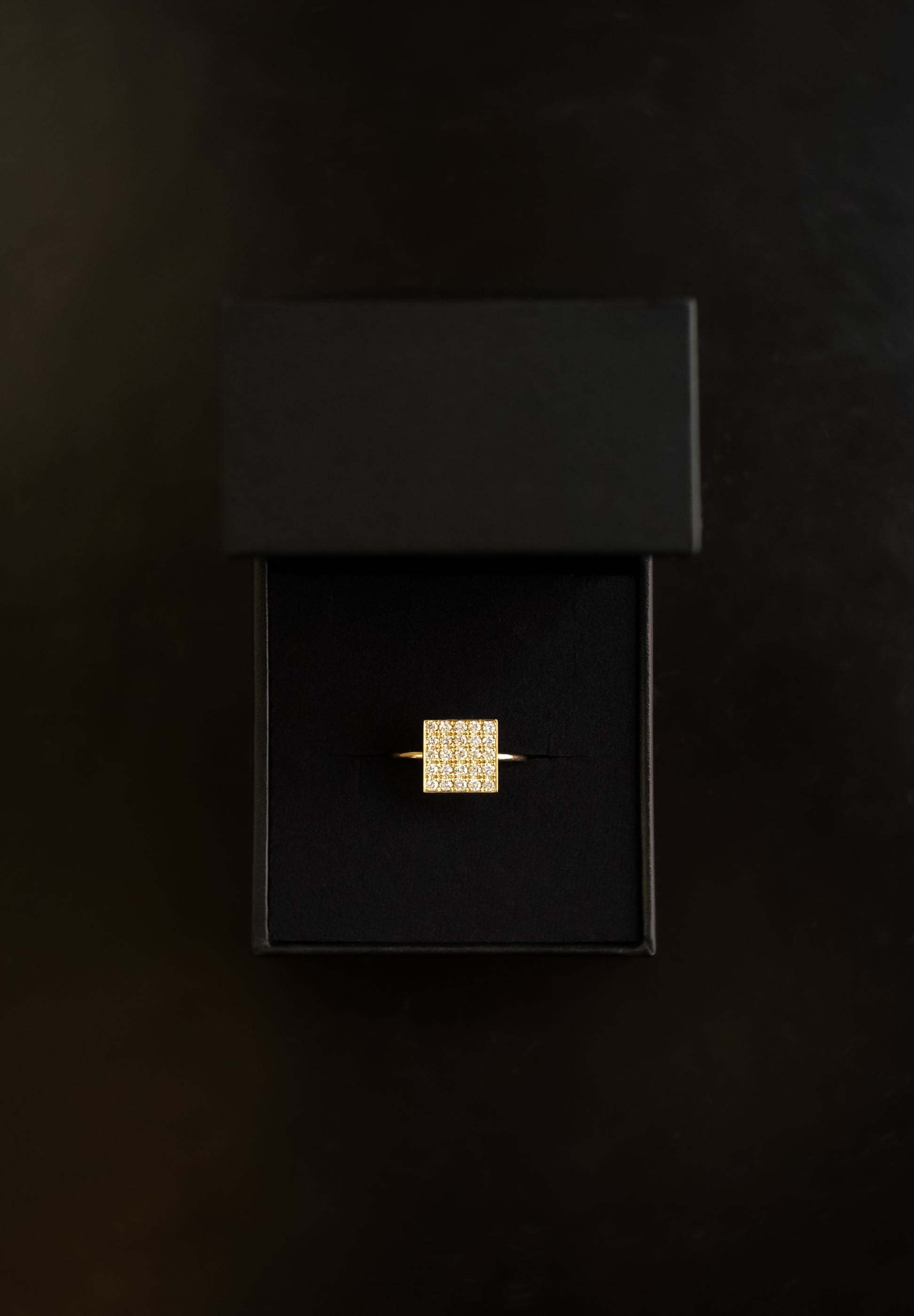 パヴェという石留め技術を使ってダイヤモンドが埋められたリング。”パヴェ”とはフランス語で石畳を意味します。パリのサン=ジェルマン=デ=プレ地区の石畳をイメージしデザインされました。